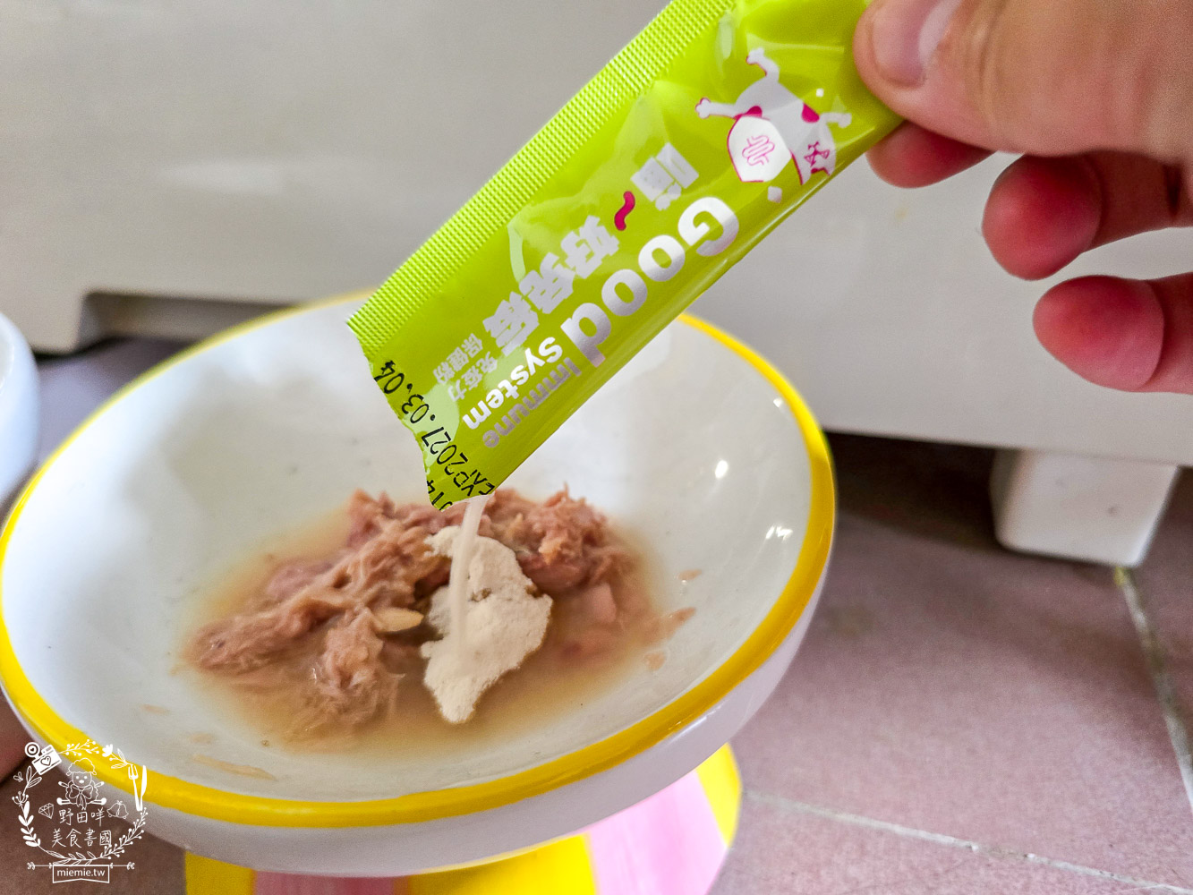 喵~好免疫的適口性真的不錯。粉質細緻、沒有明顯腥味,我把它撒在飼料上稍微攪一攪,貓咪就自己吃光光。而且是獨立包裝,一次餵食一包,分量很好拿捏,也不怕粉狀產品受潮或沾味,攜帶出門也很方便。
